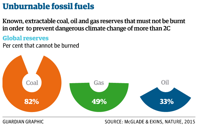 Come già presentavamo su questo sito, circa i 2/3 delle riserve di petrolio e gas oggi scoperte sono non consumabili (a pena di superare lo “scenario climatico di +2 °C”): queste stesse riserve sono in larga parte controllate da Aziende private, un dato che dimostra come il rischio di questa limitazione estrattiva sia allocato non tanto verso gli Stati Nazionali, quanto soprattutto verso le Società quotate in Borsa.