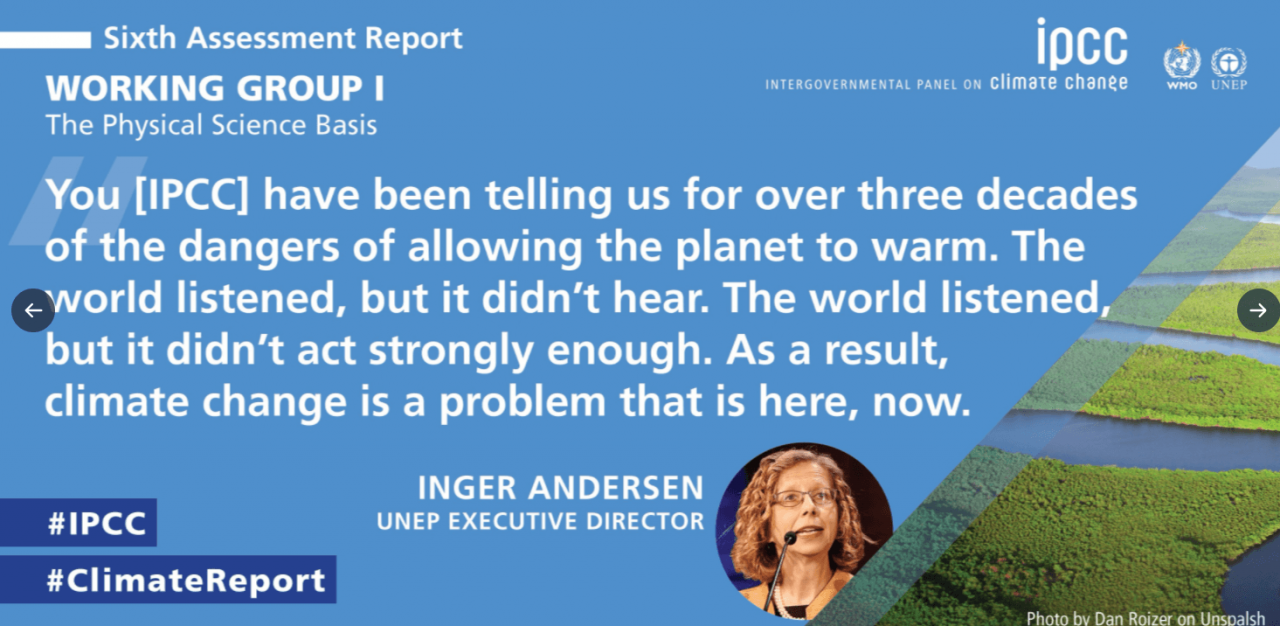 António Guterres, Segretario generale delle Nazioni Unite: “Il rapporto di oggi è un codice rosso per l’umanità. I campanelli d’allarme sono assordanti e le prove sono inconfutabili: le emissioni di gas serra dovute ai combustibili fossili e alla deforestazione stanno soffocando il nostro pianeta e mettendo a rischio immediato miliardi di persone. Il riscaldamento globale sta interessando ogni regione della Terra e molti dei cambiamenti che stanno diventando irreversibili. Dobbiamo agire ora in modo deciso per tenere ‘viva’ la soglia dei 1,5 gradi”.
