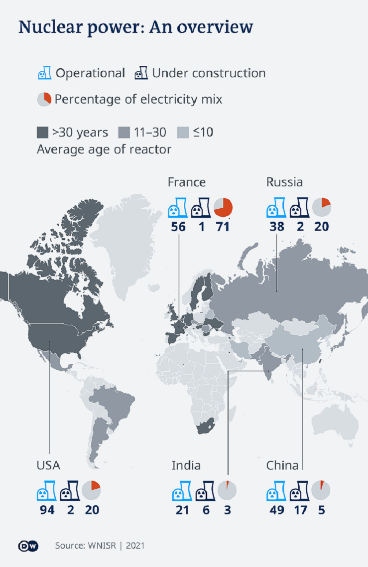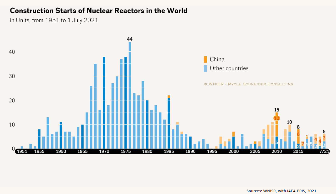 In totale, a livello mondiale, ci sono 53 unità in costruzione, ma di queste almeno 31 sono in ritardo: in 10 casi, l’inizio dei lavori risale a un decennio fa o più, comprese due unità la cui costruzione ha avuto inizio rispettivamente 36 e 45 anni fa.