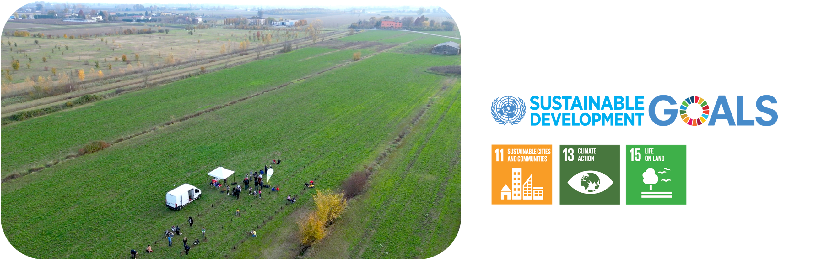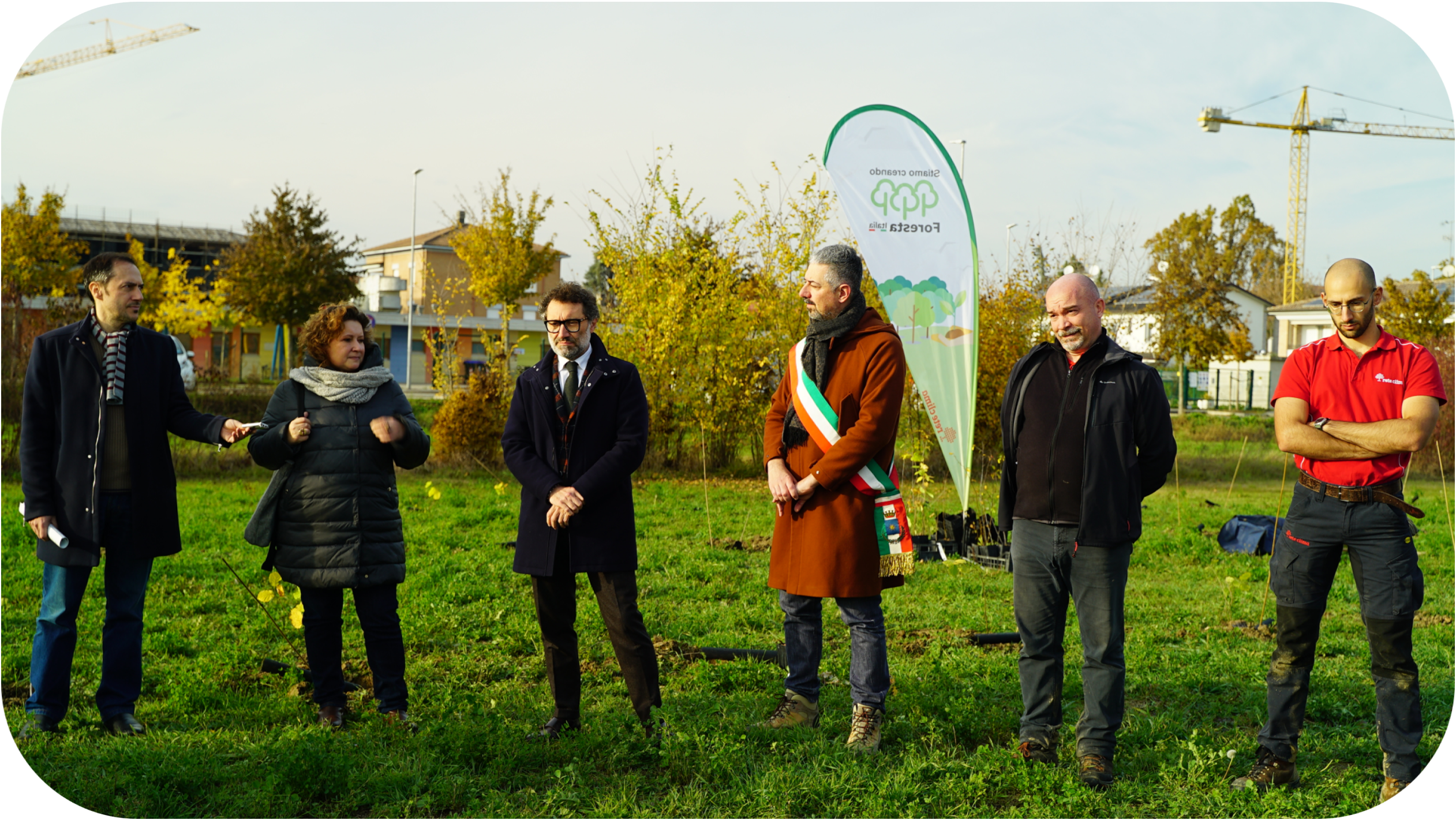 Su 6 ettari di area pubblica, vengono messi a dimora i primi 200 alberi e arbusti di circa 9.000 specie arboree autoctone, di provenienza italiana e certificata.