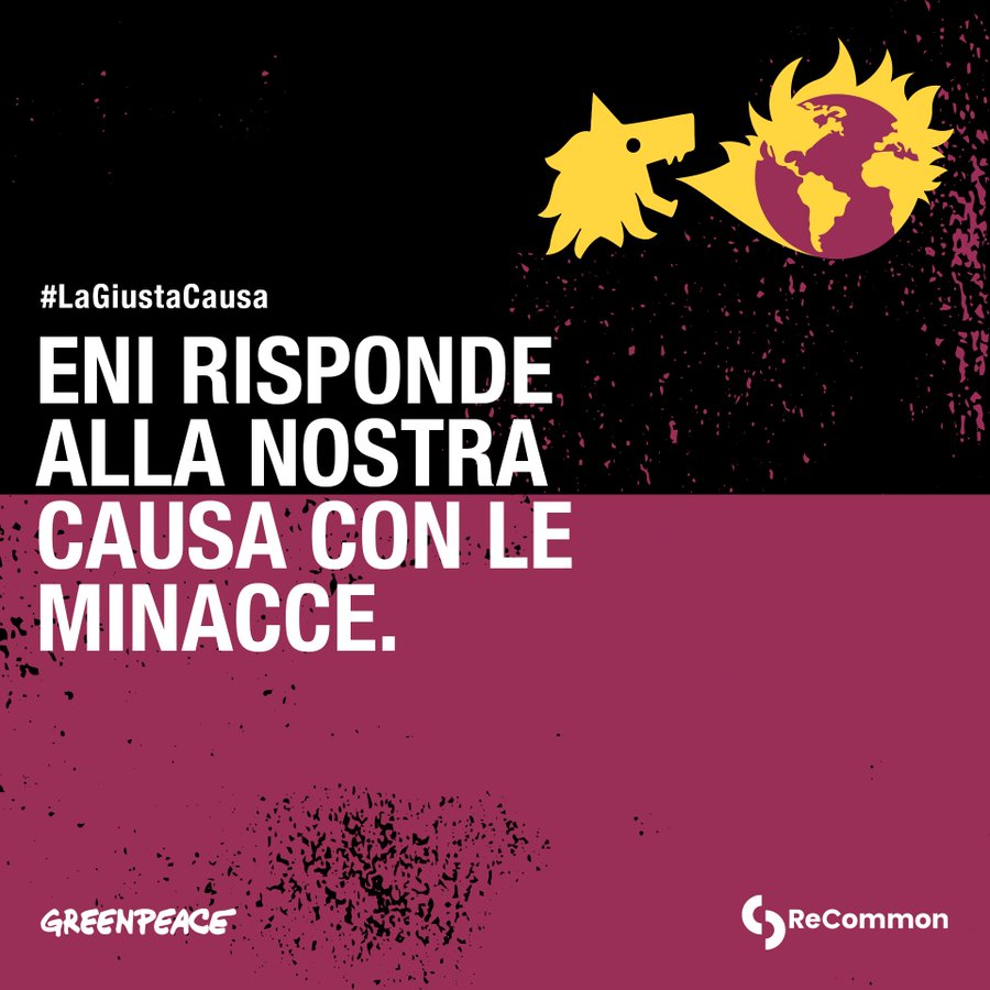"Proprio nei giorni in cui migliaia di persone vivono sulla propria pelle gli effetti disastrosi della crisi climatica, con un tempismo davvero sconcertante ENI pensa di zittirci minacciando una causa di risarcimento danni per diffamazione", ha dichiarato Chiara Campione, responsabile dell’Unità Clima di Greenpeace Italia.