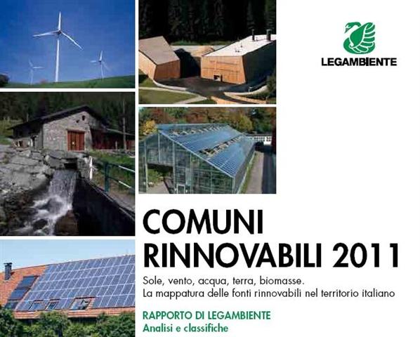 Il rapporto, redatto in collaborazione con il Gestore dei Servizi Energetici (GSE) e Sorgenia, precisa che i Comuni italiani che ospitano almeno un impianto a fonti rinnovabili sono 7.661 (erano 6.993 nel Rapporto 2010): una grande maggioranza dei Comuni hanno almeno un impianto solare termico o fotovoltaico (7.273), 1.033 utilizzano biomasse e biogas, 946 hanno impianti di mini-idroelettrico, 374 ospitano uno o più impianti eolici, 290 hanno sonde geotermiche.