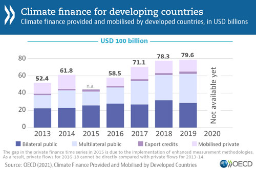 Alla COP di Copenaghen del 2009, a questi Paesi fu promesso di attivare finanziamenti di 100 miliardi di dollari all'anno entro il 2020. Questo obiettivo non è mai stato raggiunto.