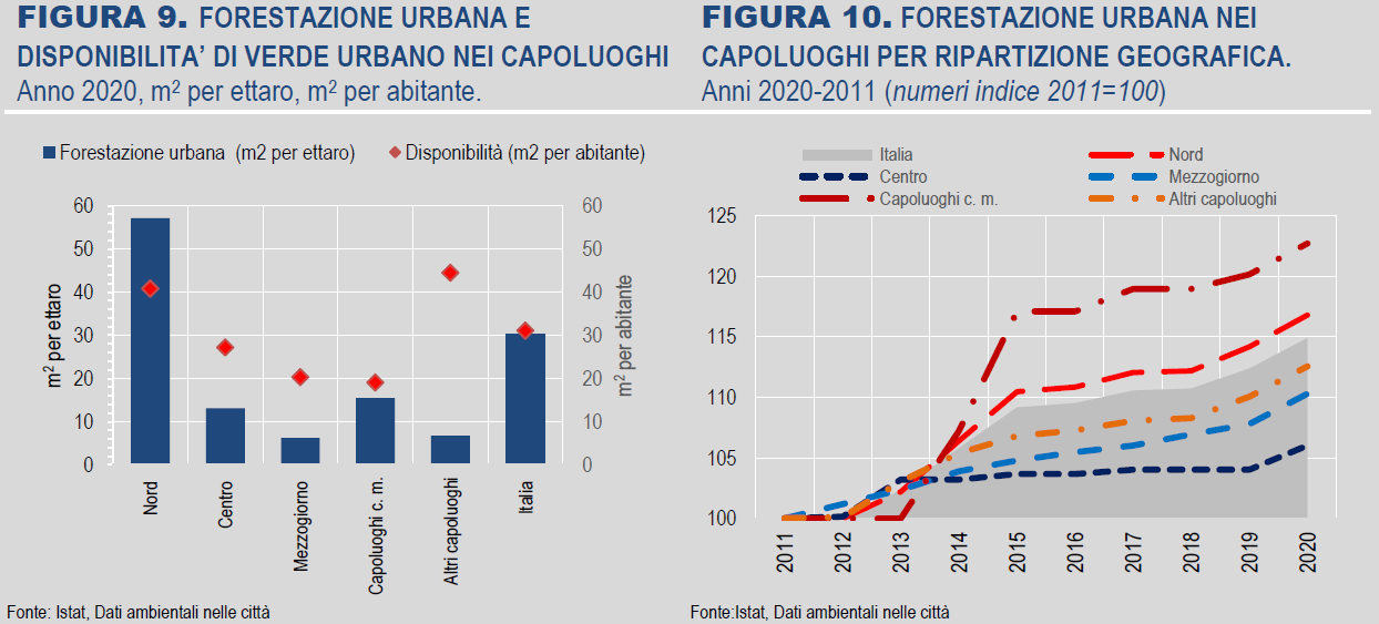 “La tutela e la promozione del verde urbano è una soluzione naturale che, aumentando la resilienza delle città, può svolgere un ruolo importante nelle strategie di contrasto ai cambiamenti climatici e, più in generale, nel miglioramento della sostenibilità dei sistemi urbani e della qualità della vita dei cittadini”, si legge nel report ISTAT.