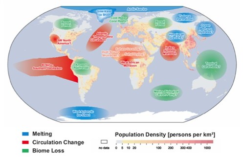 Questa nuova ricerca (Pik) individua –appunto- sei punti critici per l’equilibrio climatico della Terra, definite “regioni potenzialmente instabili nel sistema climatico” (tipping elements) una cui variazione significativa avrebbe la potenzialità di destabilizzare l’intero sistema climatico del pianeta.