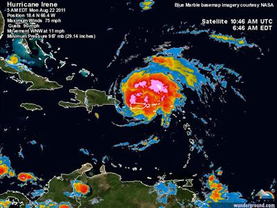 L’uragano Irene, in ultimo declassato a tempesta tropicale, ha scatenato la sua furia su una New York evacuata e sulla costa est, provocando però meno danni del previsto: a fronte di perdite potenziali inizialmente quantificate in circa 25 miliardi di dollari, le prime stime parlano di danni meno ingenti seppur rilevantissimi (tra i 7 ed i 20 miliardi di dollari).