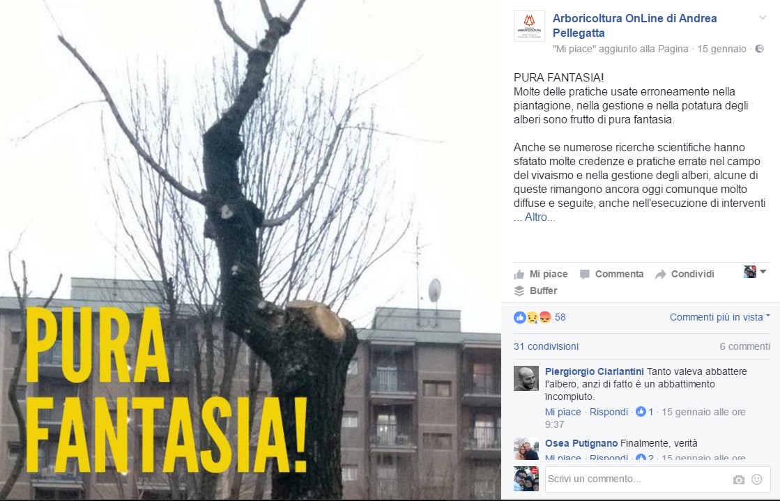 Ecco perché sosteniamo che la potatura drastica implica una serie di costi di manutenzione decisamente maggiori rispetto ai costi di una corretta potatura, ed ecco perché sosteniamo anche che per la corretta gestione dell'albero serva far riferimento ad un arboricoltore, cioè un professionista in grado di supportare il proprietario o il custode dell’albero nelle fasi decisionali ed in grado di operare secondo le più corrette e moderne tecniche arboricolturali.