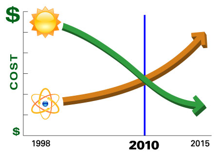 Lo studio, che prende in considerazione unicamente la realtà ed i dati del North Carolina (Stati Uniti), calcola che nel 2010 l’energia elettrica prodotta dagli impianti fotovoltaici è arrivata a costare meno di quella prodotta dalle centrali nucleari: ora è così diventato più conveniente produrre energia dal sole, al costo di 16 centesimi di dollaro al kilowattora (che corrispondono a circa 12 eurocent/kWh).
