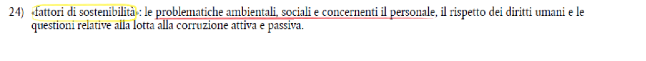 In realtà, la normativa propone una definizione “qualitativa” di investimento sostenibile, elencando nell’articolo 2 paragrafo 17 i tre requisiti da rispettare per potersi considerare tale: