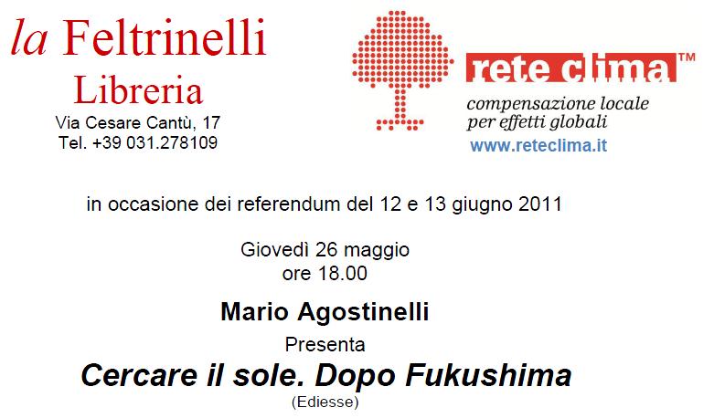 Segnaliamo che la Feltrinelli e Rete Clima organizzano per Giovedì 26 maggio (ore 18) presso la libreria la Feltrinelli di Como (in Via Cesare Cantù, 17) una discussione pre referendum sulla tematica del nucleare in Italia (qui la locandina dell'evento).