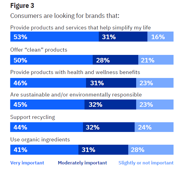 Al di là della logica importanza attribuita all'utilità dei beni offerti sul mercato da un brand, sono ritenute importanti le sue performance rispetto all'offerta di prodotti "puliti" e di attuazione di comportamenti responsabili.