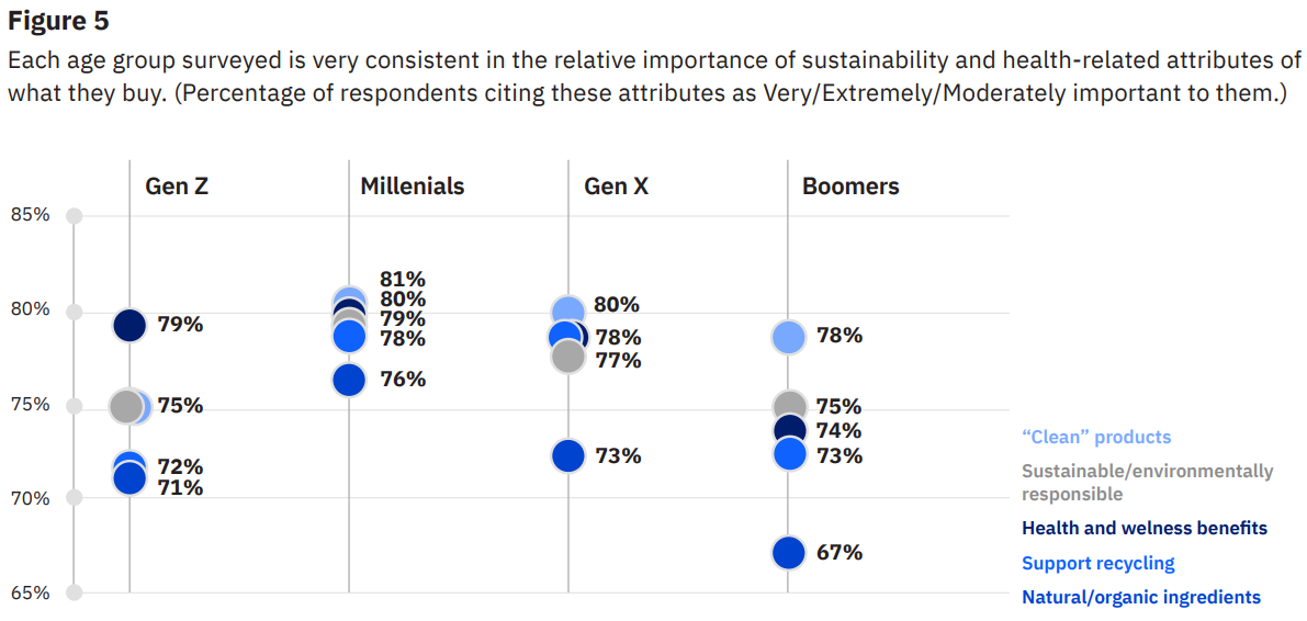 Se l'attenzione verso le le azioni e la reputation di un brand è alta in ogni fascia d'età, i millennials si contraddistinguono quale fascia con la sensibilità più alta verso i prodotti con prestazioni migliori nel campo della sostenibilità, o in termini di wellness o altro ancora.