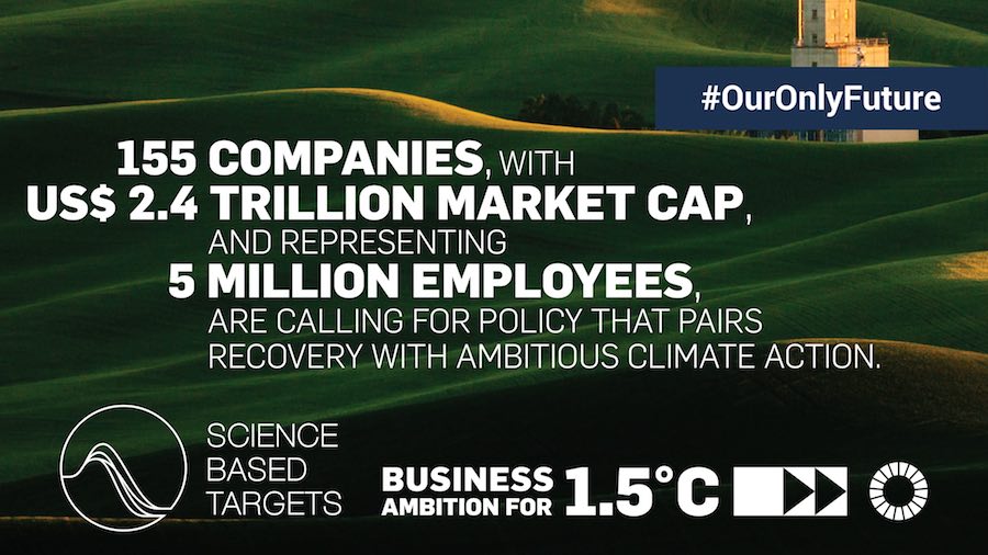 Interessante in questa logica anche il documento recentemente sottoscritto da 155 Aziende (download a seguito) nell'ambito del UN Global Compact, che chiedono ai governi di tutto il mondo di allineare le proprie misure economiche orientate alla ripresa dalla crisi post Covid-19 con le misure rivolte al contrasto al riscaldamento climatico.
