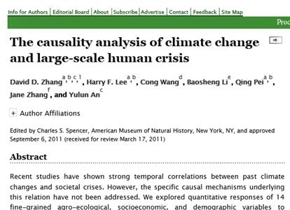 Segnaliamo un recente studio di un gruppo di ricercatori cinesi (pubblicato sulla rivista scientifica Pnas - Proceedings of the National Academy of Sciences of the United States of America) che riflette sul nesso causale fra le variazioni climatiche nei secoli passati in Europa e le crisi sociali nel continente europeo.