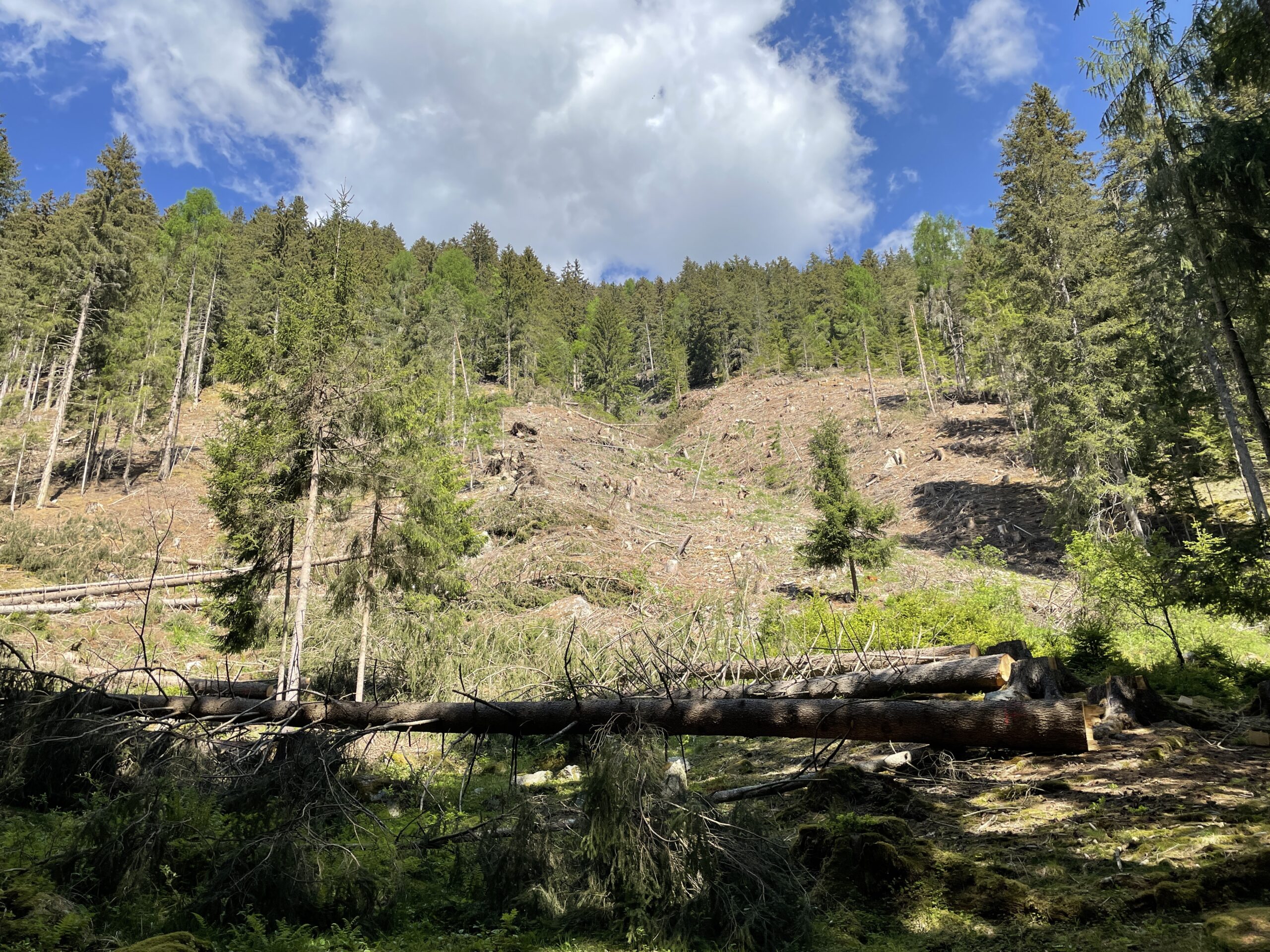 La valle di Anterselva, protetta dalle spettacolari vette del Parco Naturale Vedrette di Ries-Aurina e con una vista incredibile sul maestoso mondo alpino delle Dolomiti, è stata interessata da schianti da vento (la Tempesta Vaia) e schianti da neve, che complessivamente hanno abbattuto migliaia di alberi.