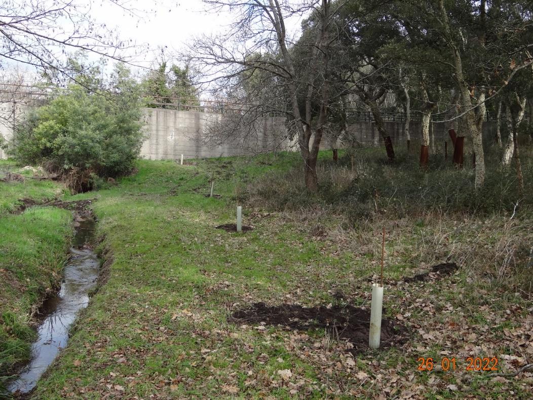 - creazione e ripristino dei canali di scorrimento delle acque: questa azione è finalizzata alla tutela delle risorse idriche contribuendo al ripristino della capacità del bacino idrico di depurazione e regolazione del flusso idrico, eliminando le criticità legate agli allagamenti periodici - e quindi - consentendo anche una maggiore fruibilità della sughereta;