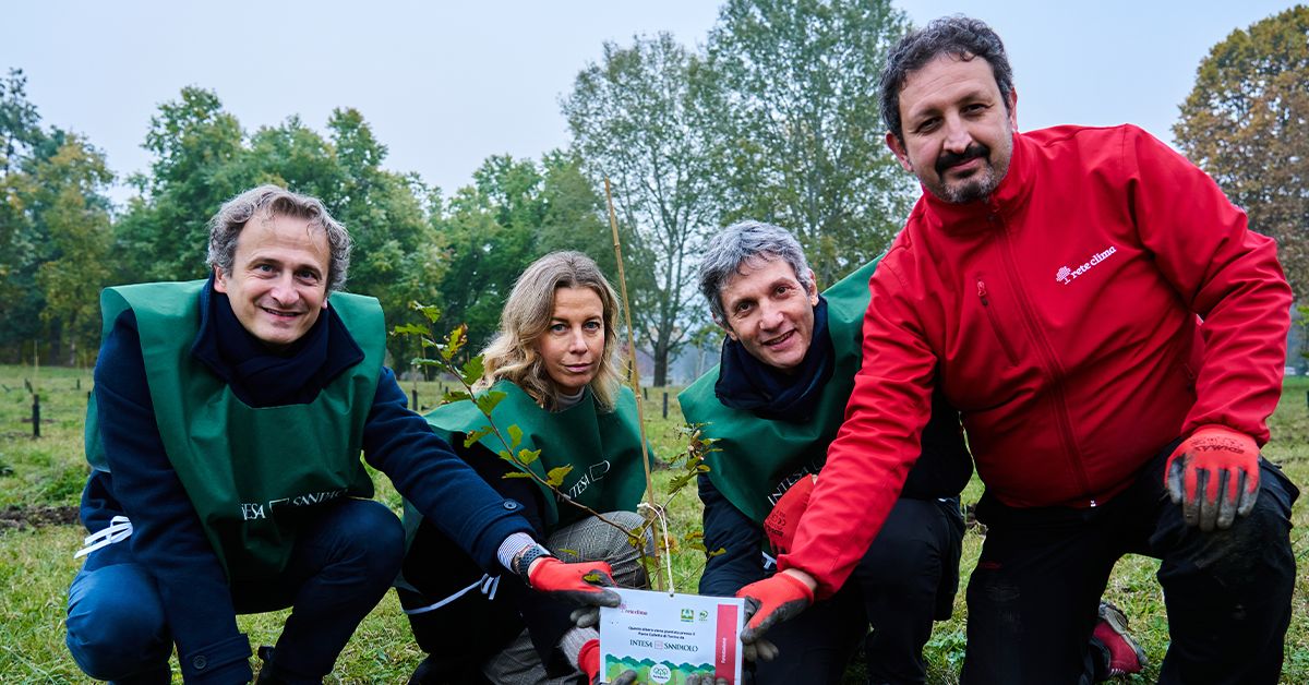 Il progetto Think Forestry ha preso il via a metà novembre 2023 con due piantagioni aziendali in aree urbane presso Torino e Roma, partecipate dal personale di Intesa Sanpaolo: