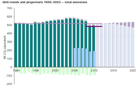 Osservando la scheda Italia sul sito della AEA, le emissioni nel 2010 sono inferiori rispetto al 1990 di 25,6 milioni di tonnellate di CO2eq., cioè pari a circa il -4,8%, quindi ancora al di sopra del target del -6,5% previsto per il periodo 2008-2012.
