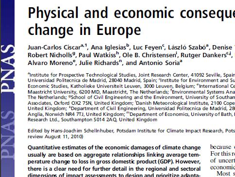 Secondo i ricercatori curatori dello studio: “Abbiamo scoperto che se il clima del 2080 si verificasse oggi, le perdite annuali in benessere delle famiglie nell'Unione europea (Ue) derivanti dai quattro impatti di mercato sarebbero comprese tra lo 0,2 e l'1%. Se la perdita di benessere si presume sia costante nel tempo, il cambiamento climatico potrebbe dimezzare la crescita annua del benessere dell'Ue. Scenari con temperature più calde e in conseguenza un aumento più elevato del livello del mare, danno come risultato danni economici più gravi. Tuttavia, i risultati mostrano che ci sono notevoli differenze tra le regioni europee. L'Europa meridionale, le Isole Britanniche e l'Europa del centro-nord sembrano essere più sensibili ai cambiamenti climatici”.