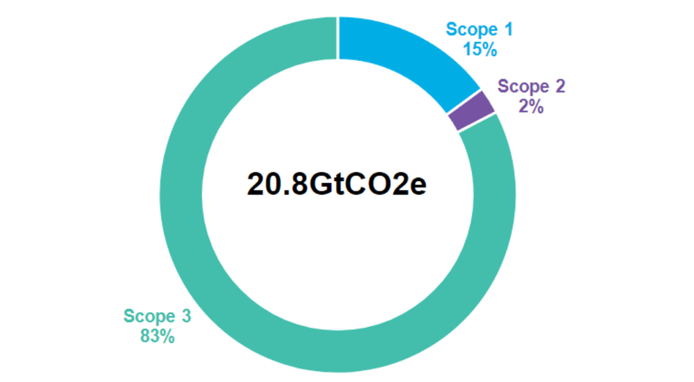 Se invece consideriamo l'impronta di carbonio delle 820 più grandi aziende con obiettivi Net-Zero pari a 20,8 miliardi di tonnellate di anidride carbonica equivalente (GtCO2e), le emissioni serra di Scope 3 costituiscono l’83% (17,2GtCO2e) del totale.