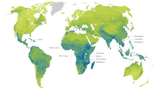 E nel report i valori più alti di Ccvi sono attribuiti proprio ai Paesi con la più rapida crescita di popolazione, spesso classificati come a "rischio estremo" (il più alto livello di rischio): si parla di Paesi come (in ordine di rischio) Haiti, Bangladesh, Sierra Leone, Zimbabwe, Madagascar, Cambogia, Mozambico, Repubblica democratica del Congo, Malawi e Filippine.