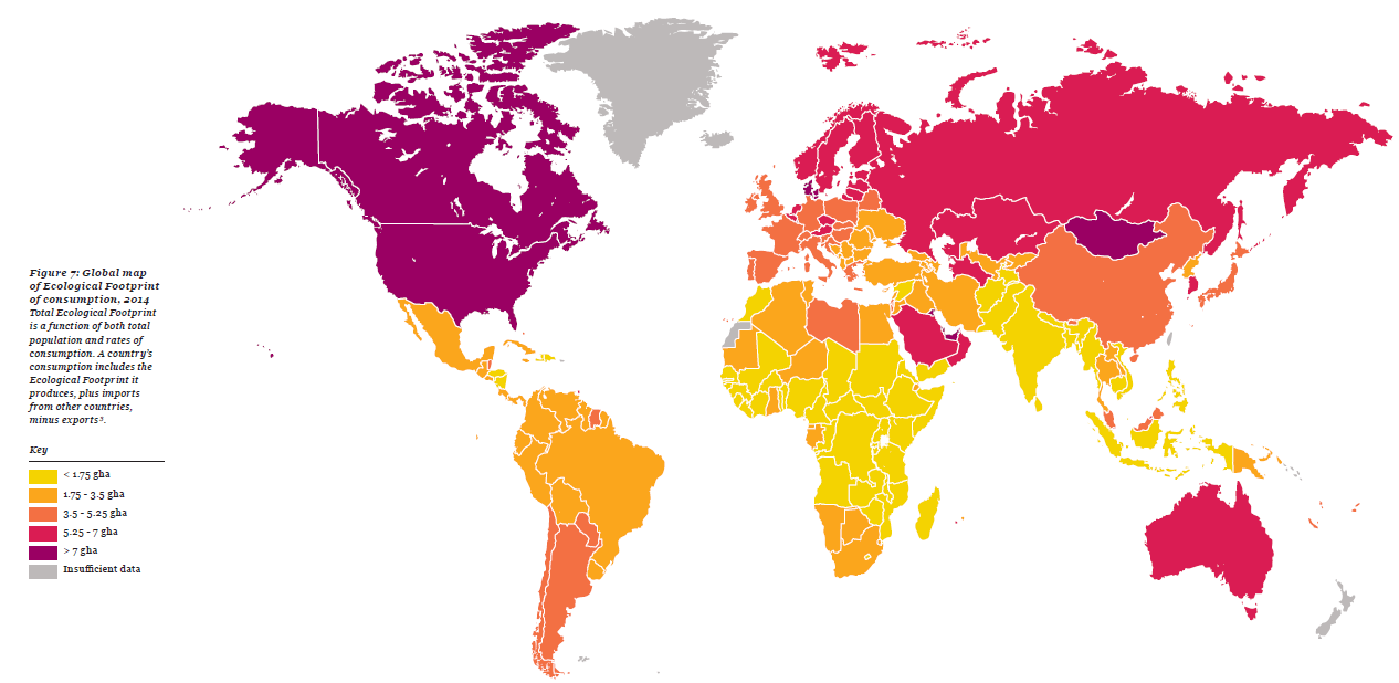 E, anche analizzando la mappa che assegna l'impronta ambientale a tutti gli stati del Mondo, serve che il primo passo sia fatto proprio da quei paesi più industrializzati che hanno la responsabilità -storica ed attuale- del maggior consumo di risorse naturali, tra cui anche l'Italia: